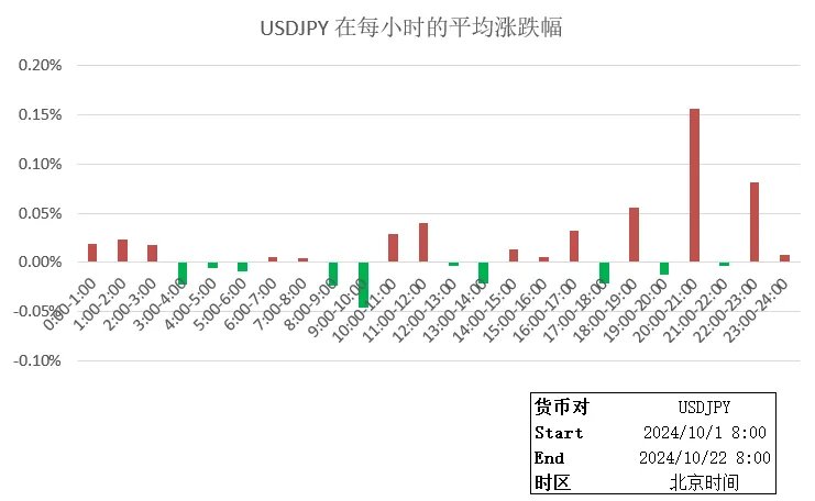 从分时统计来看,10月至今USD/JPY上行的时间段主要是欧洲和纽约时间段,而在早上的日本时段USDJPY偏向于下跌,表明来自日本本土投资者更倾向于买入日元。