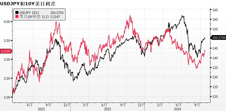 除了美国大选,日本也将在月底(10月27日)进行国会众议院选举。最新民调显示,日本首相石破茂领导的自民党支持率下滑,很可能无法获得过半数的席位。石破茂主张日本央行货币政策正常化,但若自民党无法获得多数席位,将导致日本加息难度加大。